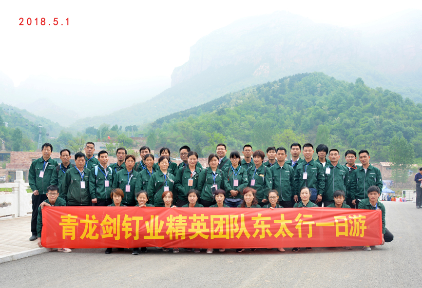 青龍劍釘業(yè)為了踐行公司“以人為本、視員工為家人”的管理理念,不斷提升團隊凝聚力,發(fā)揚“家”的企業(yè)文化,5月1日,公司組織精英團隊前往東太行景區(qū)一日游集體活動。