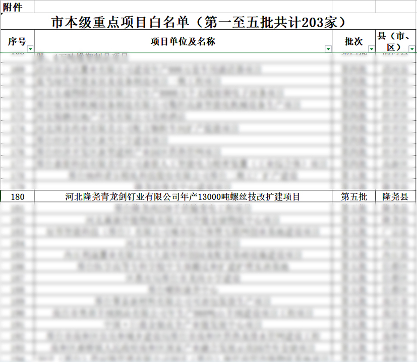 青龍劍釘業列入市本級重點項目“白名單”!