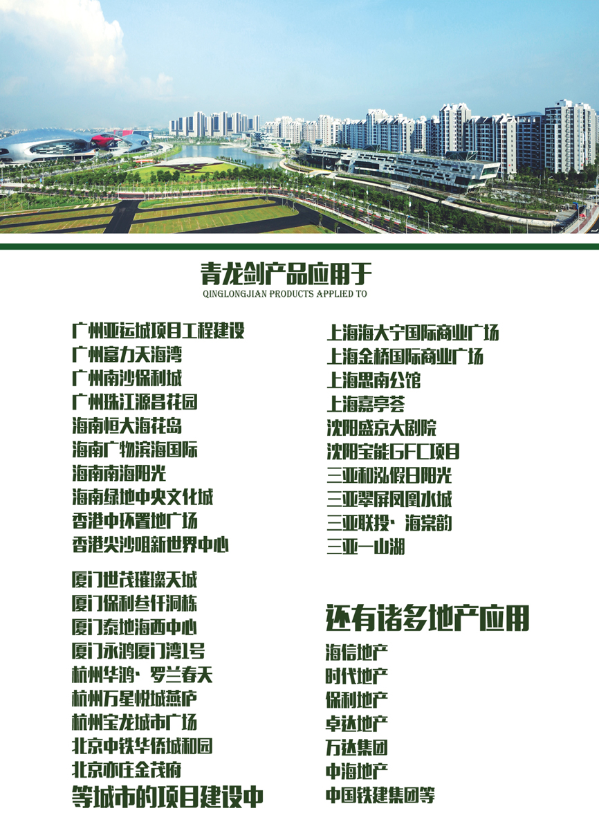 近日,收到廣州利合房地產(chǎn)發(fā)來(lái)的“青龍劍”品牌釘類產(chǎn)品在廣州亞運(yùn)城項(xiàng)目成功入選的相關(guān)材料,青龍劍被列入工程項(xiàng)目中指定品牌釘類產(chǎn)品。